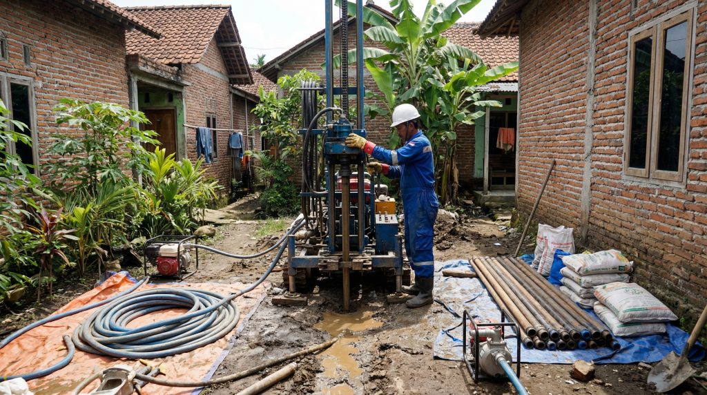 Melayani pengeboran bor pel profesional untuk kebutuhan air bersih rumah dan bangunan. Dikerjakan dengan peralatan lengkap, hasil rapi, dan kedalaman optimal agar debit air stabil, jernih, dan tahan lama. Cocok untuk rumah, ruko, hingga usaha.
